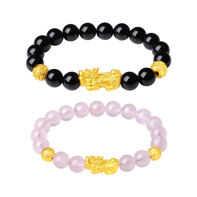 3D Gold-Plated S999 Fine Silver Pixiu Fortune Bead Couple Bracelet