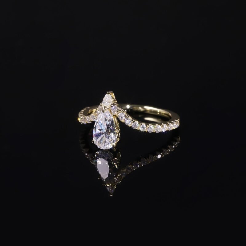 925 Silver 18K Diamond Engagement Ring Gold Wedding Ring D Color VVS Water Drop Shape Moissanite Ring