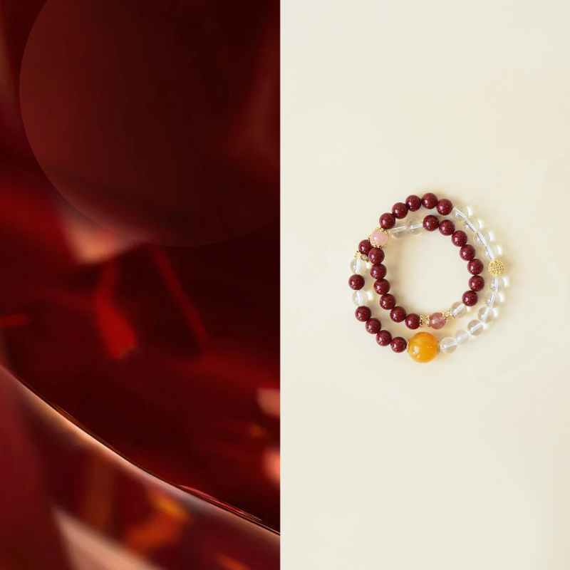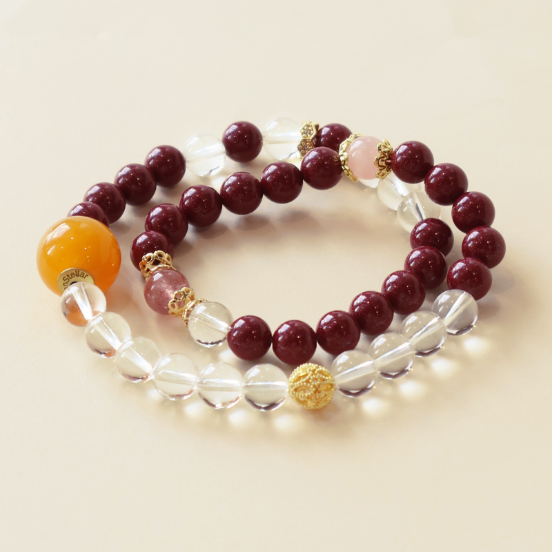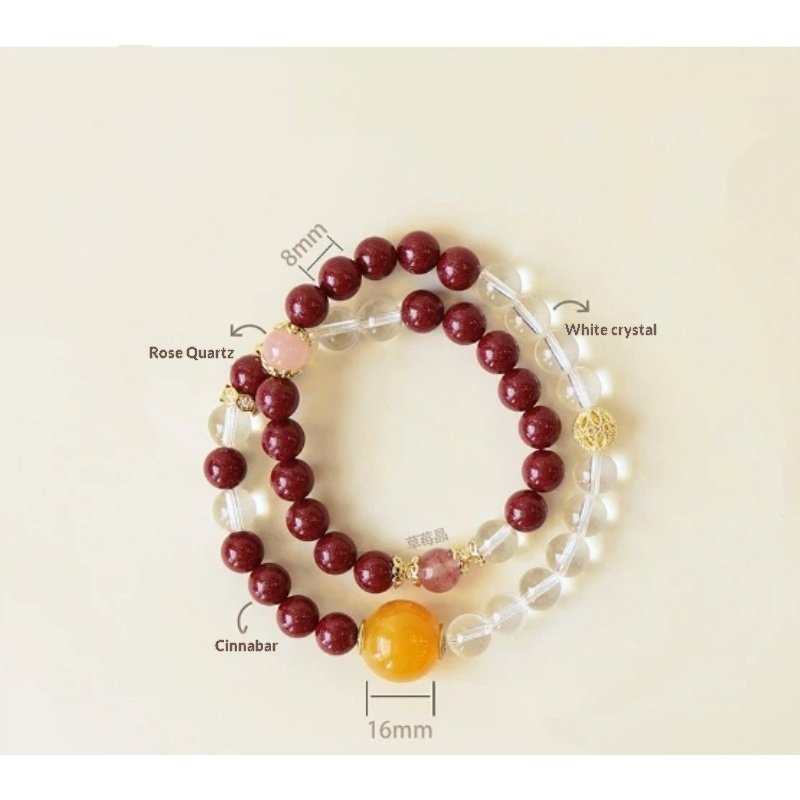 Natural Cinnabar Clear Quartz Rose Quartz Strawberry Quartz Bracelet | Healing Jewelry