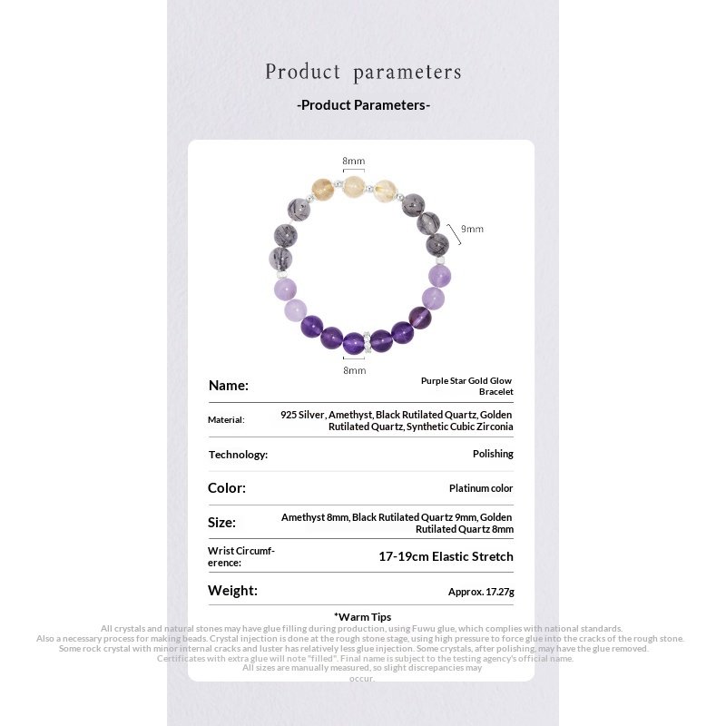 S925 Sterling Silver Purple Amethyst Black Hair Crystal Bead Bracelet is a vintage spiritual jewelry masterpiece designed for women who seek both elegance and metaphysical energy. Crafted with 925 silver and adorned with natural amethyst and black hair crystal beads, this healing bracelet combines handmade artistry with luxury aesthetics. The elastic stretch design ensures a comfortable fit for all wrist sizes, while the vintage-inspired charm adds a timeless touch to any outfit.