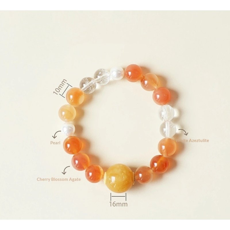 – Cherry Blossom Agate Crystal Bracelet | White Azeztulite Pearl AI Elegance Jewelry For Her
