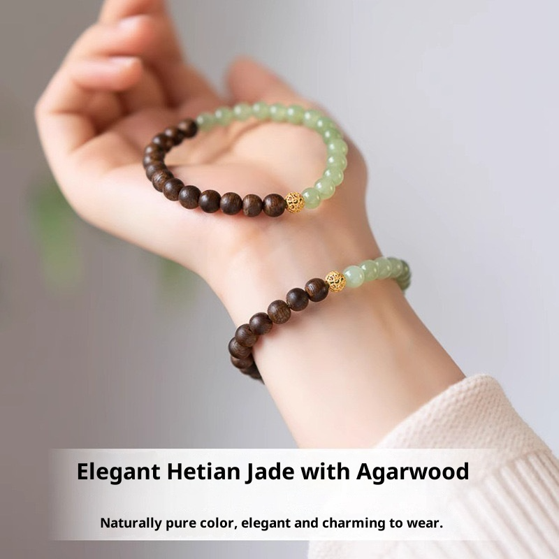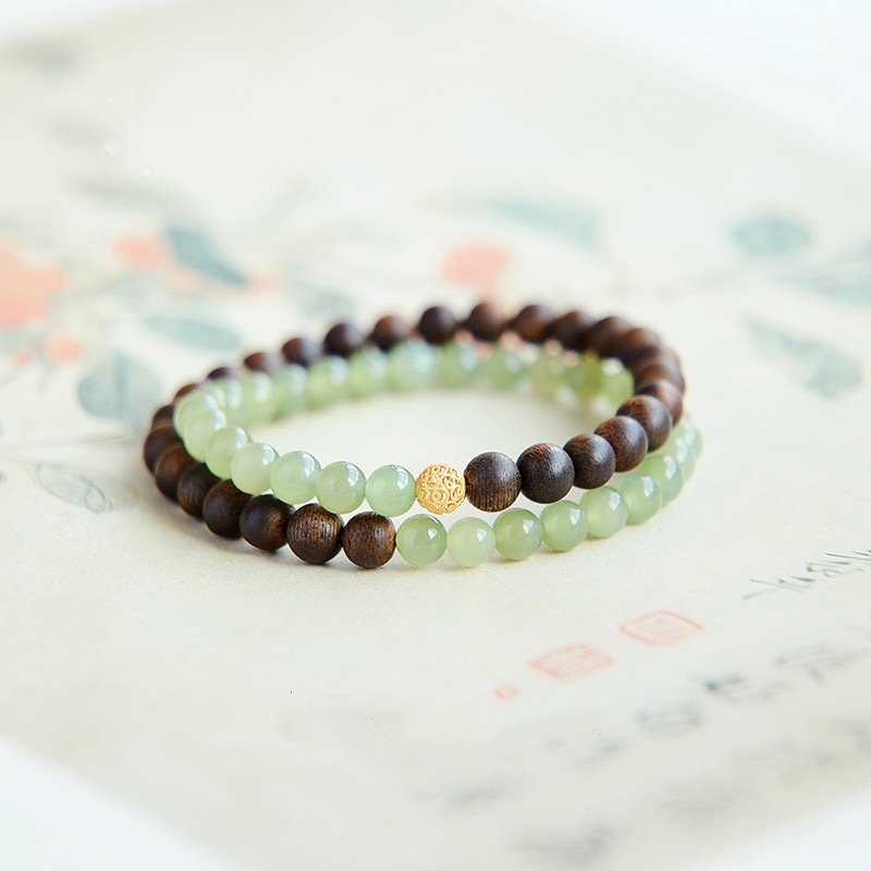 Neo-Chinese Style Double Circlet Bracelet: Brunei Agarwood & Hetian Jade