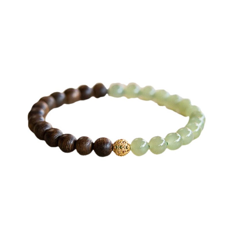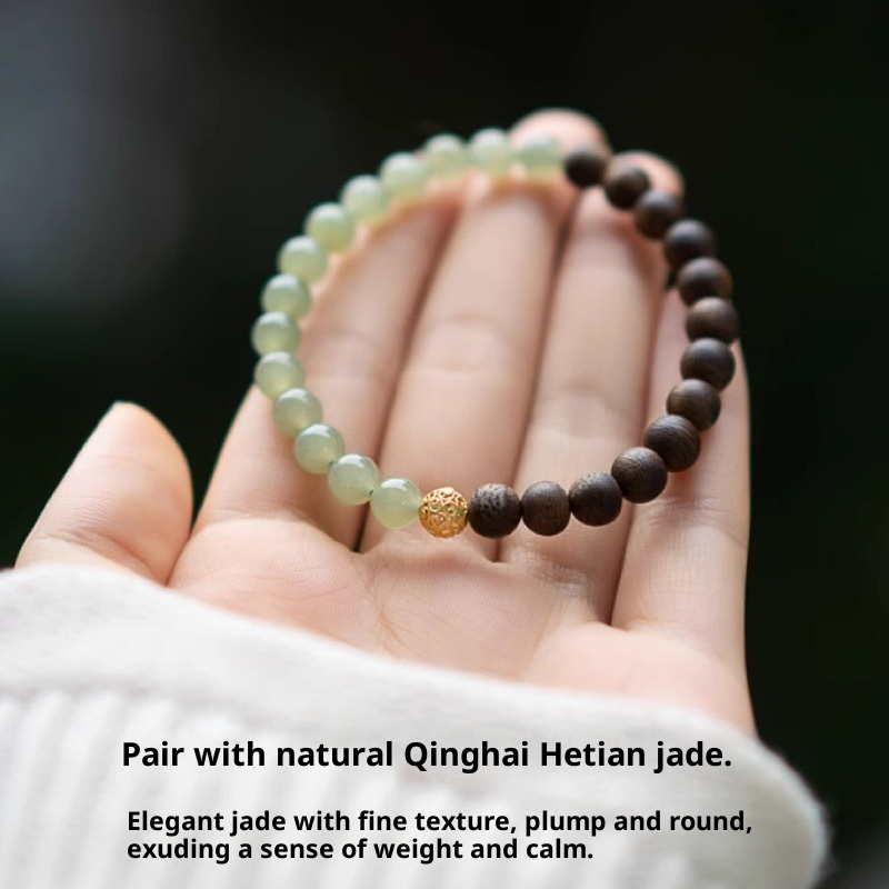 Grounding Oud Bracelet Women Natural White Jade Beads Zen-Inspired Double-Layer Wood