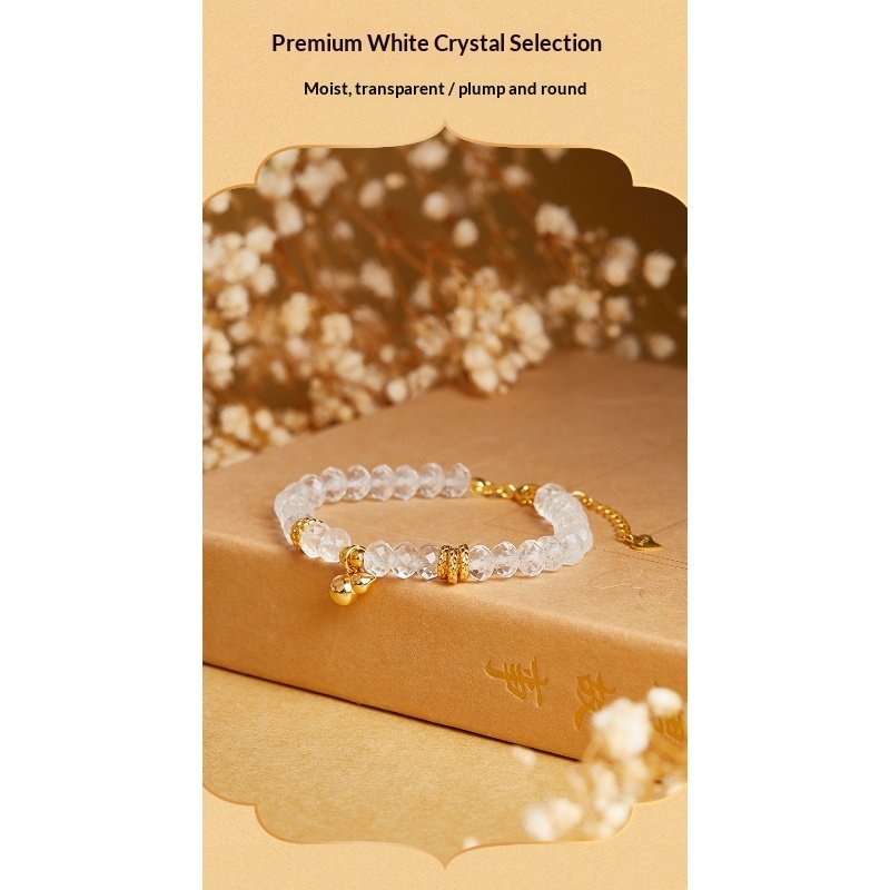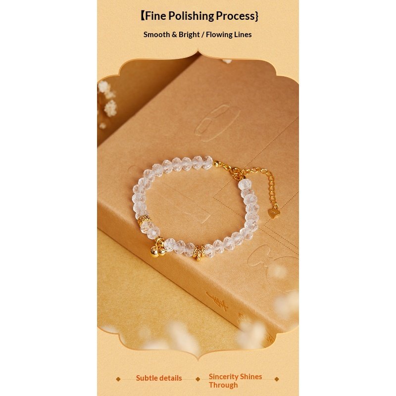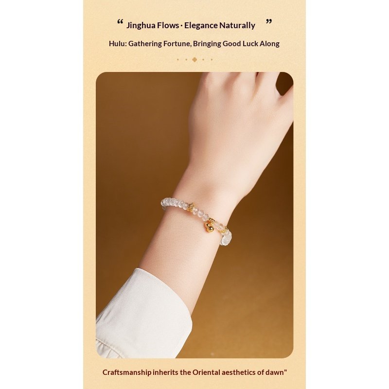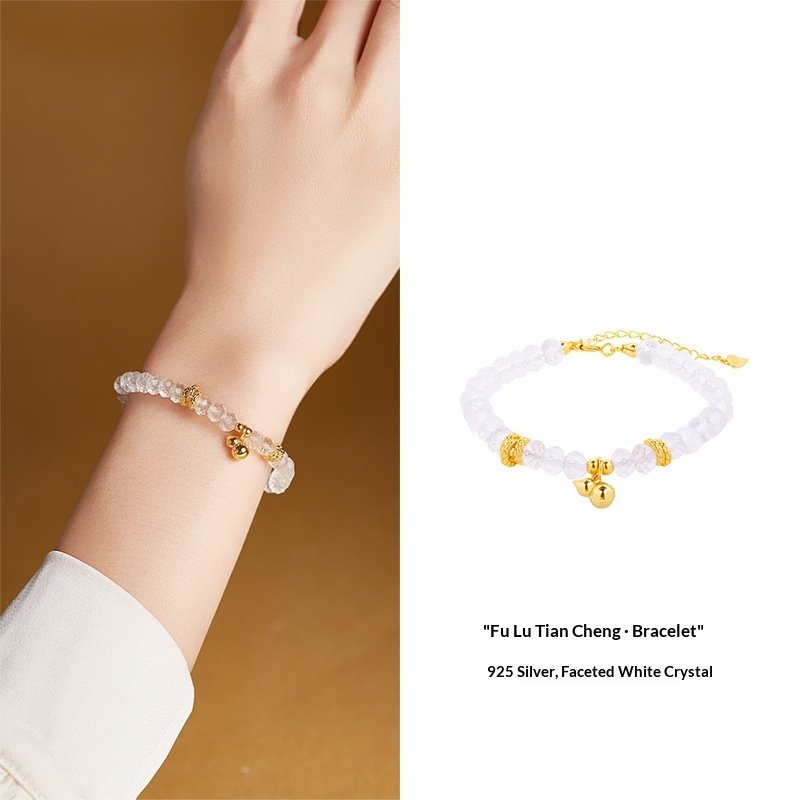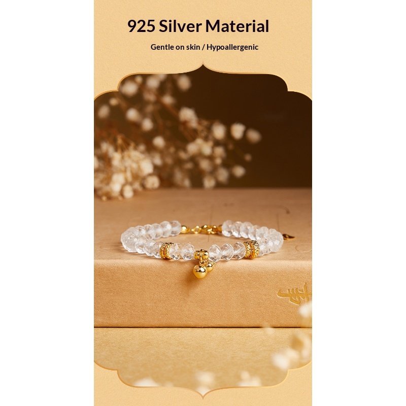 The Natural Faceted White Crystal Beaded S925 Sterling Silver Gourd Bracelet is a luxury accessory that combines traditional auspicious symbolism with modern fashion design. Centered around ‘natural crystal + sterling silver craftsmanship,’ it emphasizes the coexistence of ‘aesthetic appeal and symbolic meaning.’ ItSelect natural white crystal raw materials, which are polished through faceting techniques to achieve high transparency and refractive index, with each crystal emitting a brilliant luster, enhancing the bracelet’s ‘brightness’ and ‘design sense.’ The gourd pendant, bead clasp, chain, and other components are all made of S925 sterling silver, featuring aDelicate texture, hypoallergenic properties, and ergonomic design for comfortable wear.