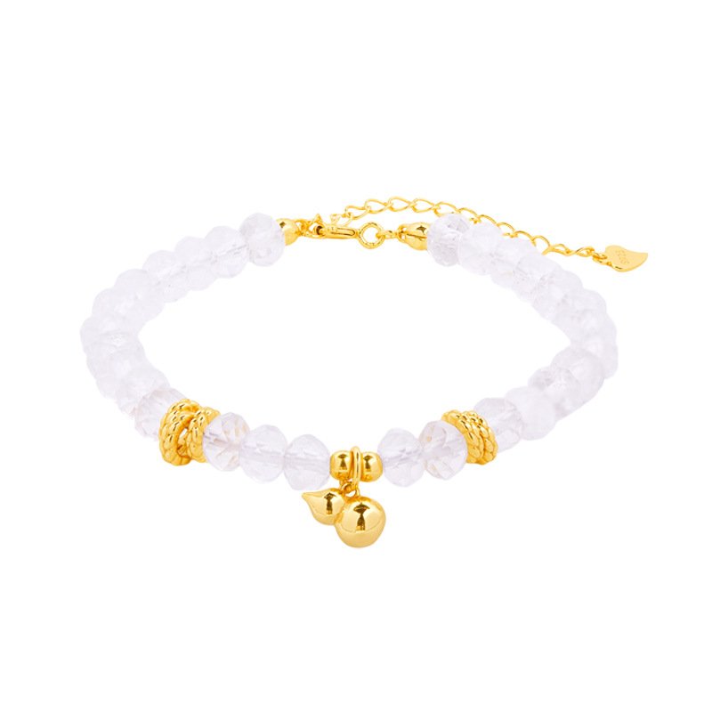 Natural faceted white crystal beaded S925 sterling silver gourd bracelet