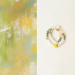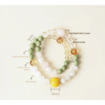 – Natural Gemstone Bracelet – Snowflake Obsidian, Matcha Alashan, Rutilated Quartz, Clear Quartz, Citrine, Pink Rabbit Hair