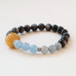 Be the first to review “– Natural Gemstone Crystal Bracelet – Silver Sheen Obsidian, Gray Moonstone, Aquamarine” Cancel reply