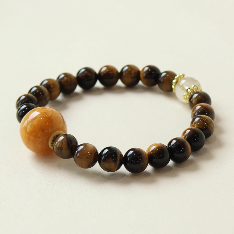 Natural Gemstone Crystal Bracelet – Yellow Tiger Eye, Rutilated Quartz