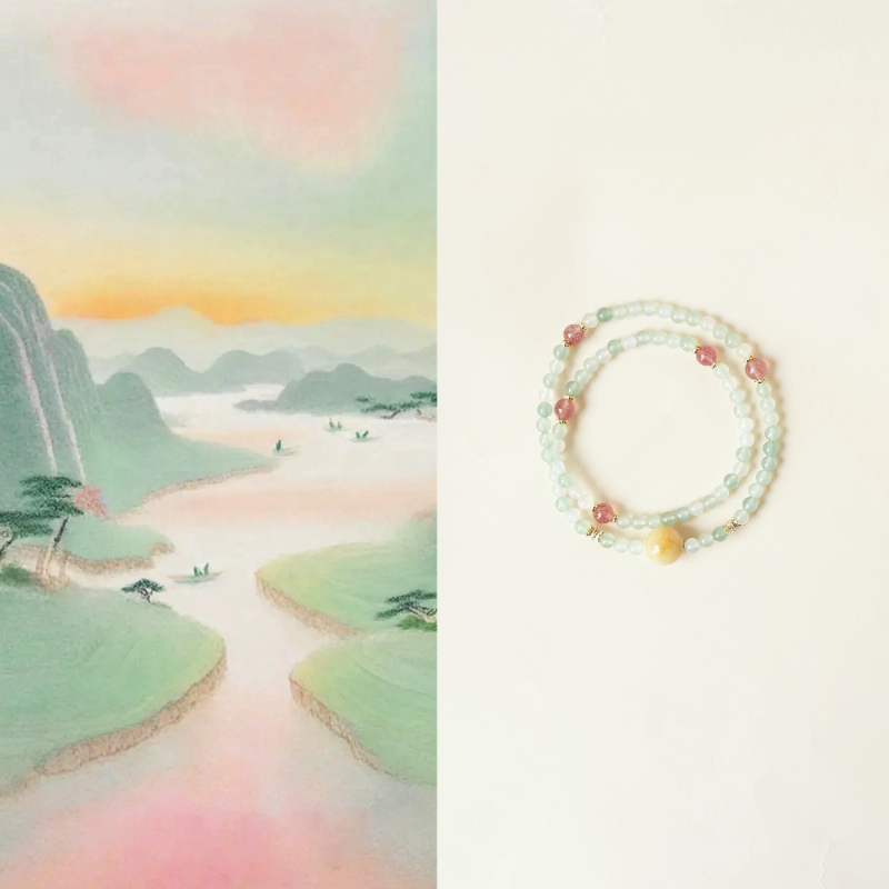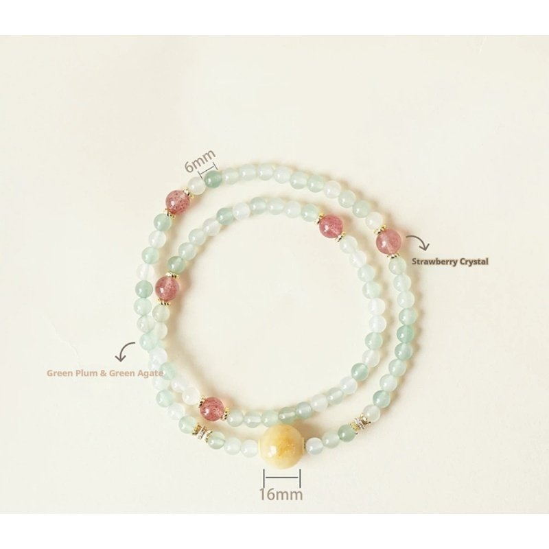 – Natural Green Plum Agate & Strawberry Quartz Bracelet | NFC AI Jewelry