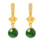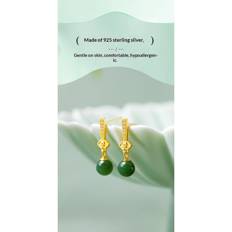Natural Hetian Jade Bead Earrings in S925 Sterling Silver | Dangle Elegance