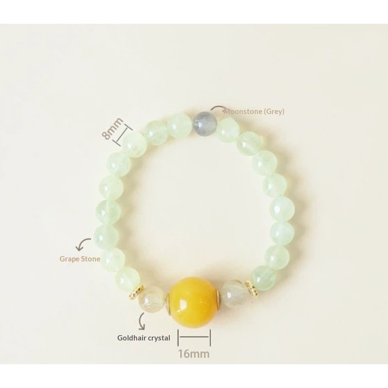 Natural Prehnite, Rutilated Quartz & Moonstone Crystal Bracelet | Authentic Healing Jewelry