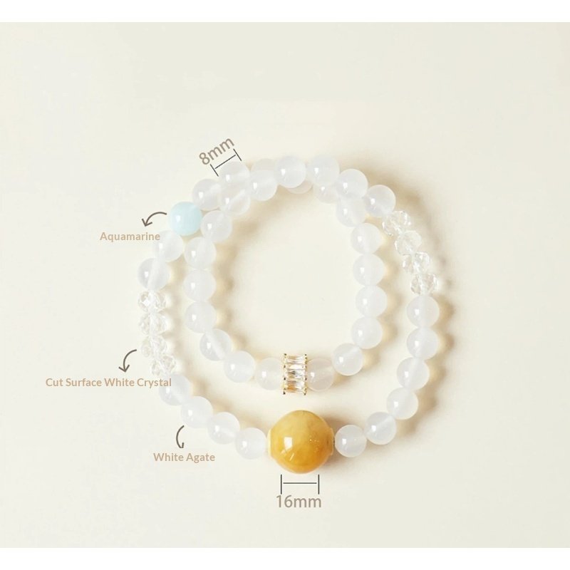 – Natural White Agate & Faceted Clear Quartz & Aquamarine Bracelet | NFC AI Jewelry