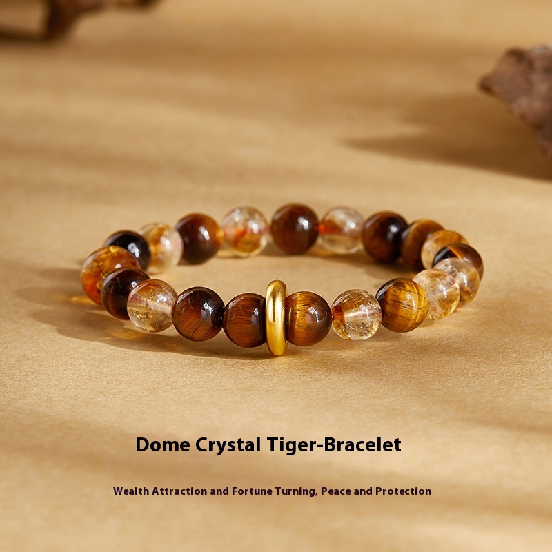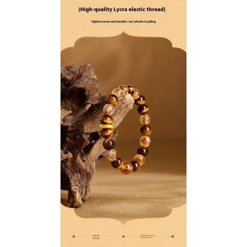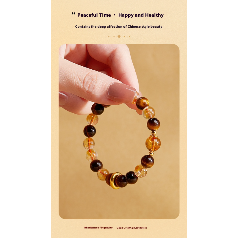 Peace Buckle Yellow Citrine & Tiger’s Eye Beaded Bracelet for Women – Neo-Chinese Luxury Design Temperament Bracelet