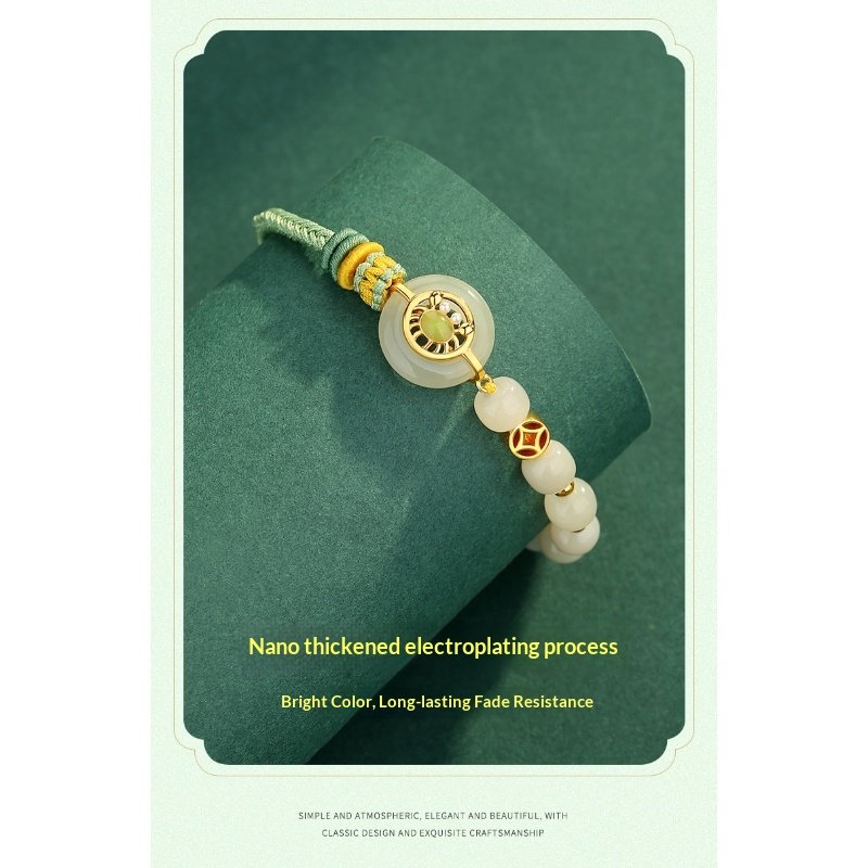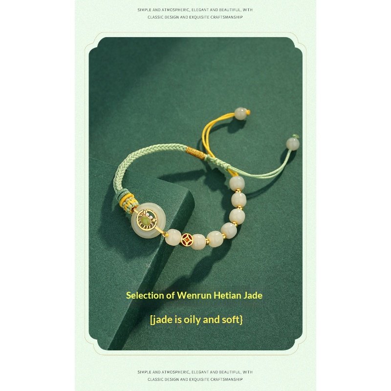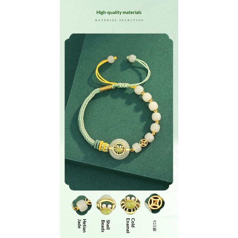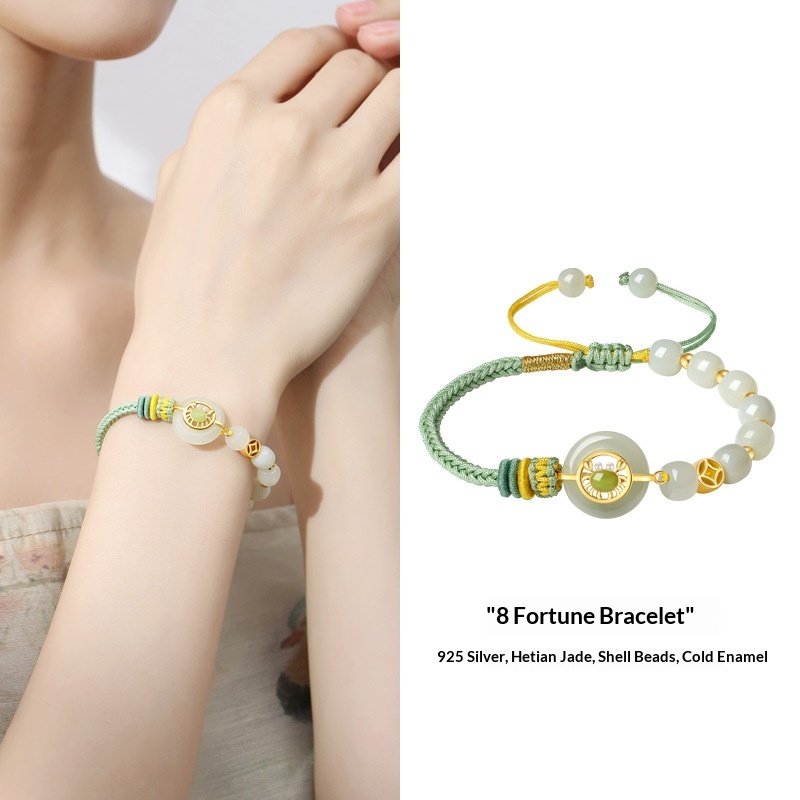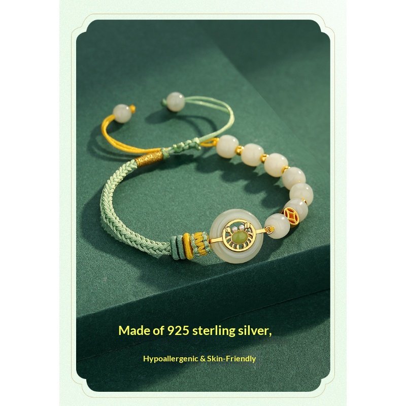 S925 Sterling Silver Bafang Laicai Hetian Jade Weaving Hand Rope