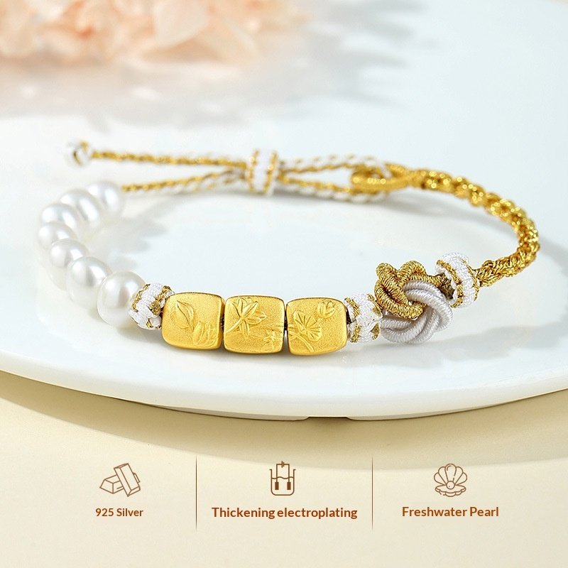 Made of national standard S925 pure silver, treated with electroplating process, it is allergy-resistant and maintains color for a long time. It features natural freshwater pearls with soft luster, some containing ‘lotus’ patterns, hand-woven silver bead chains, paired with an adjustable sliding clasp to fit different wrist sizes.