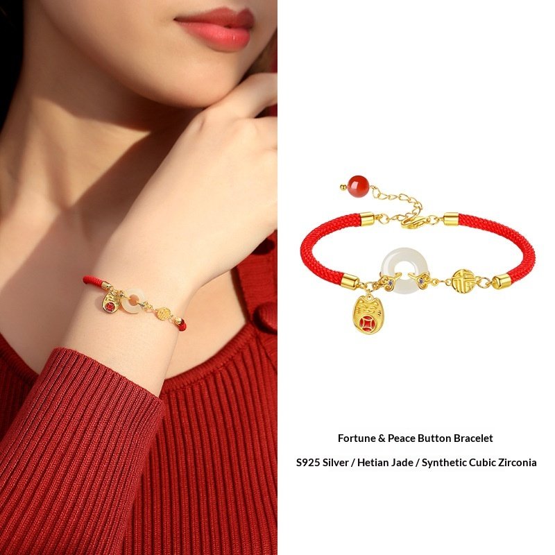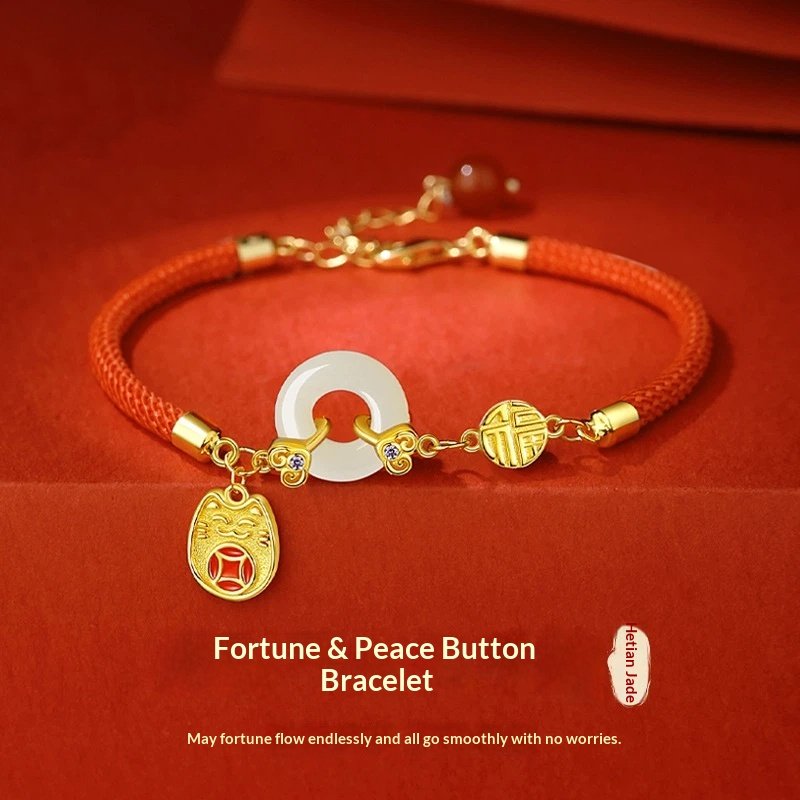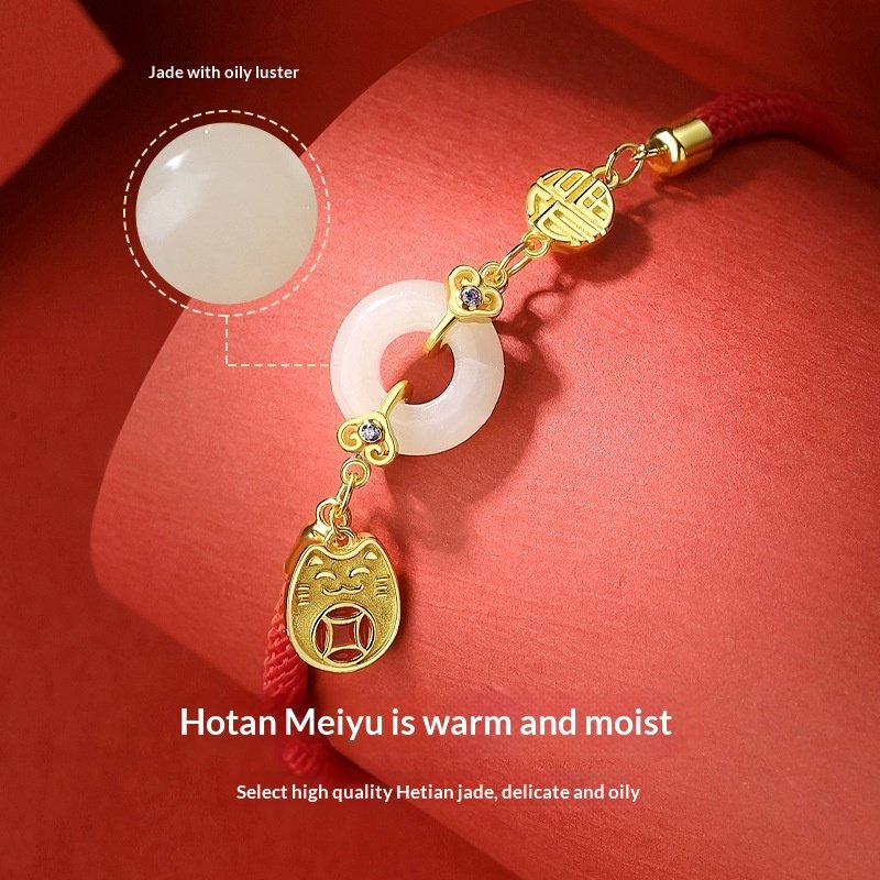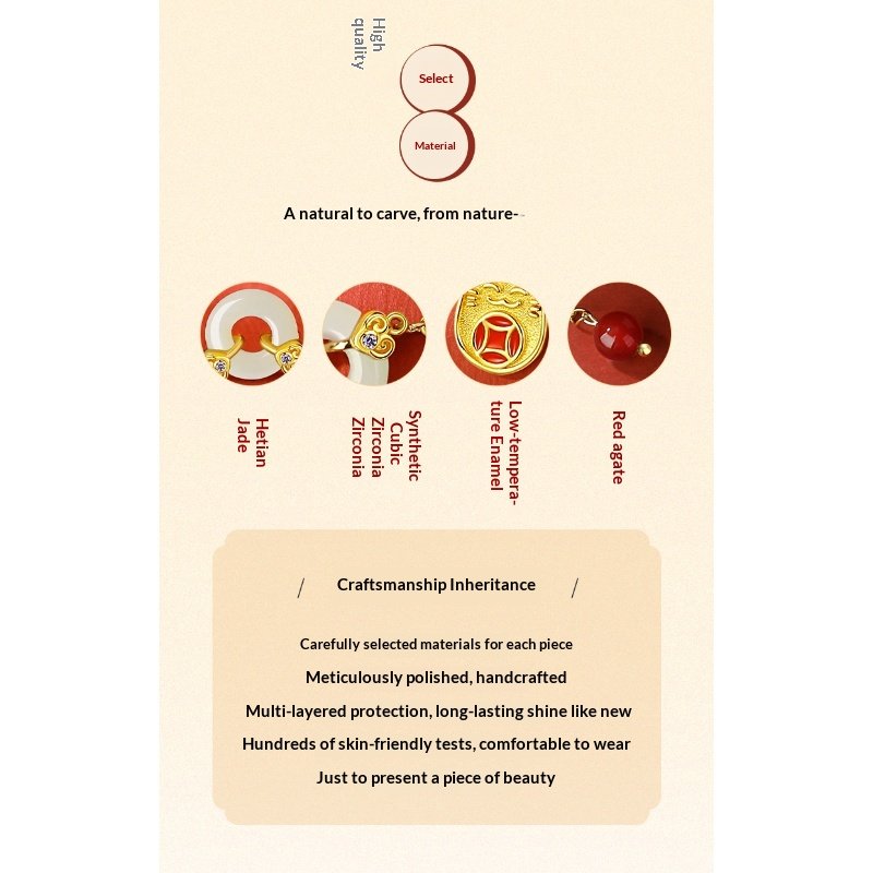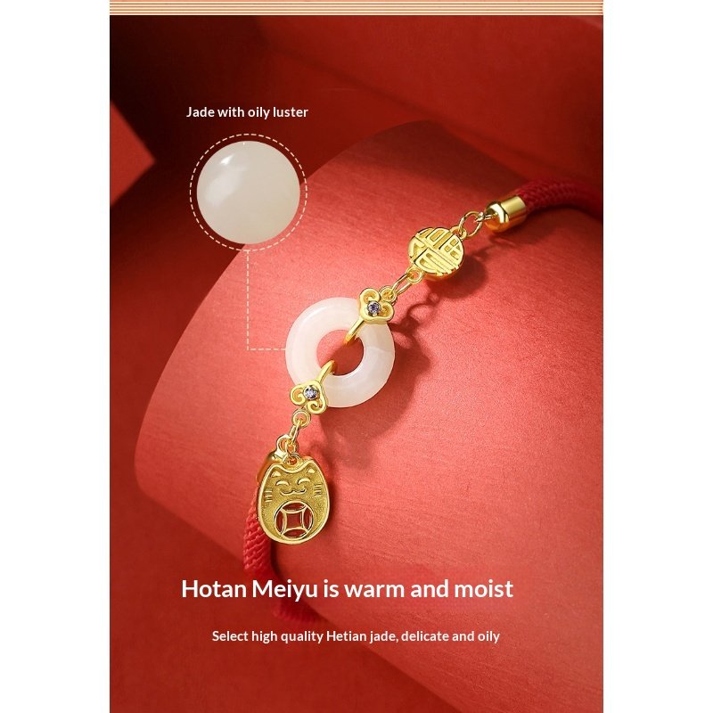 Adopting S925 pure silver (with 92.5% silver content, wear-resistant and anti-sensitivity) and natural Hetian jade (mellow, translucent, symbolizing auspiciousness and health), the Peace Knot is a traditional round jade ornament,寓意 ‘securing peace and encircling happiness’. The Lucky Cat incorporates the image of a cat holding a copper coin or ingot, symbolizing attracting wealth, good fortune, continuous luck, and enhancing financial and career luck.