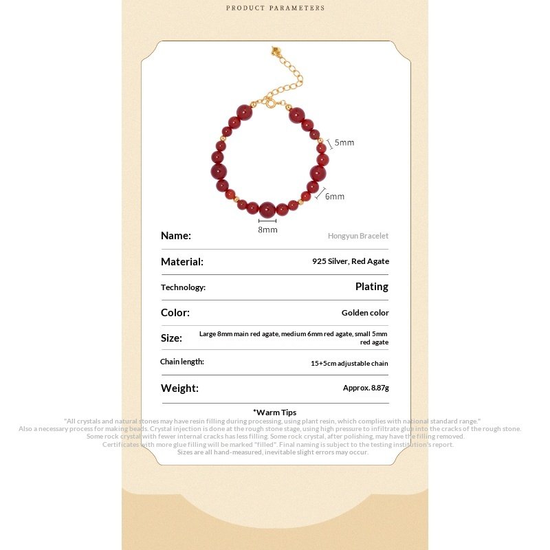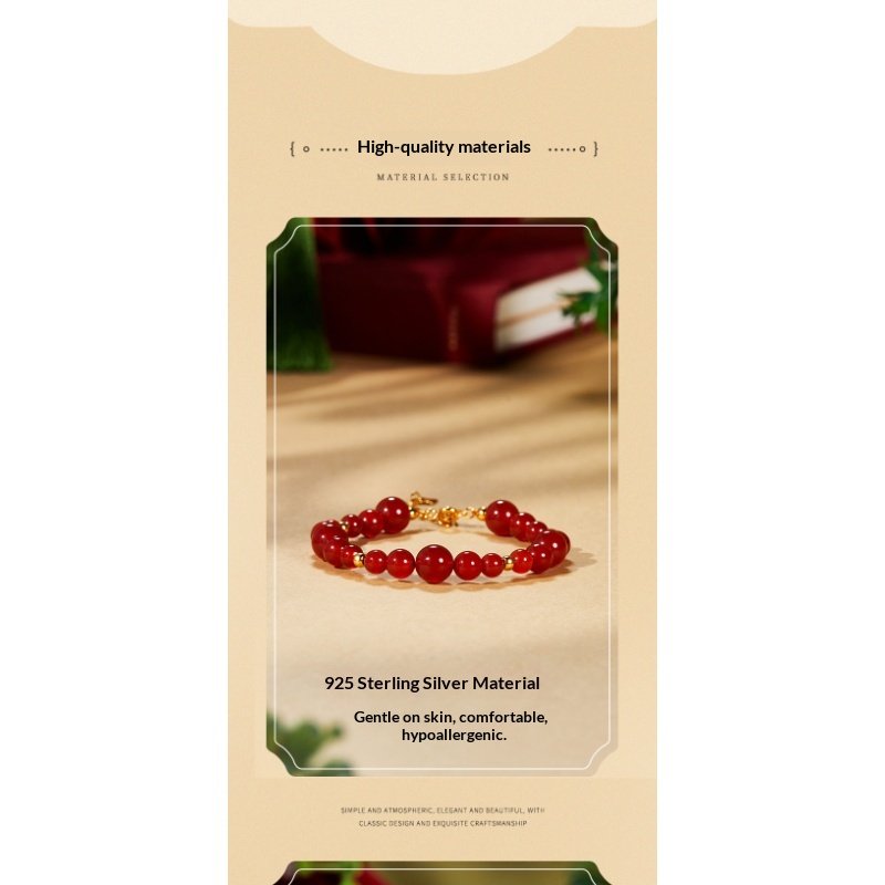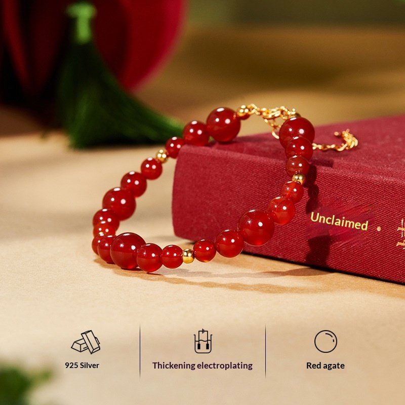 Red agate, also known as ancient cinnabar, has been used as a good luck charm since ancient times. It symbolizes auspiciousness and beauty, and also represents the enhancement of love, loyalty, and courage.,Eternal Love Charm – Each bead carries blessings of prosperity and passion, a timeless heirloom for your special moments.