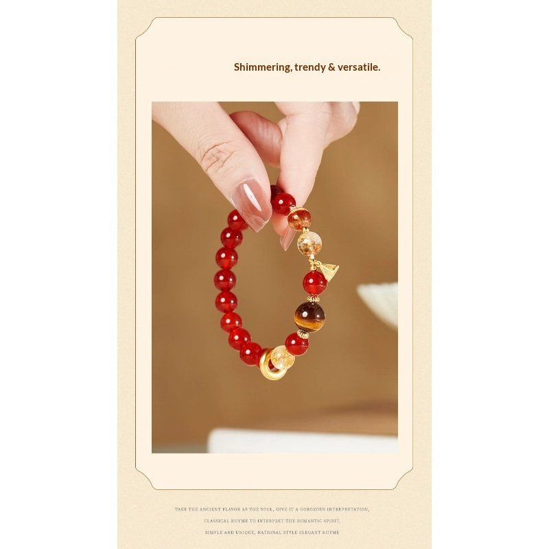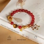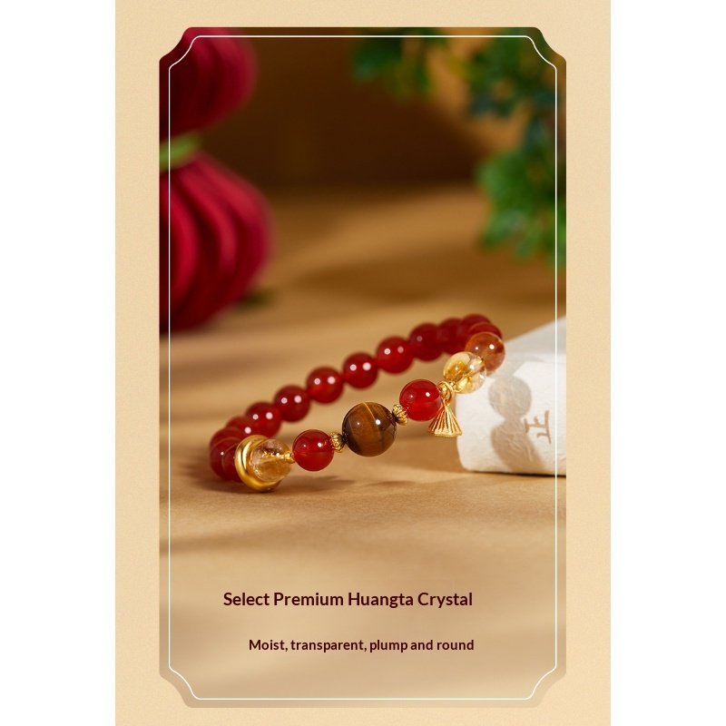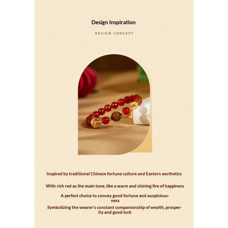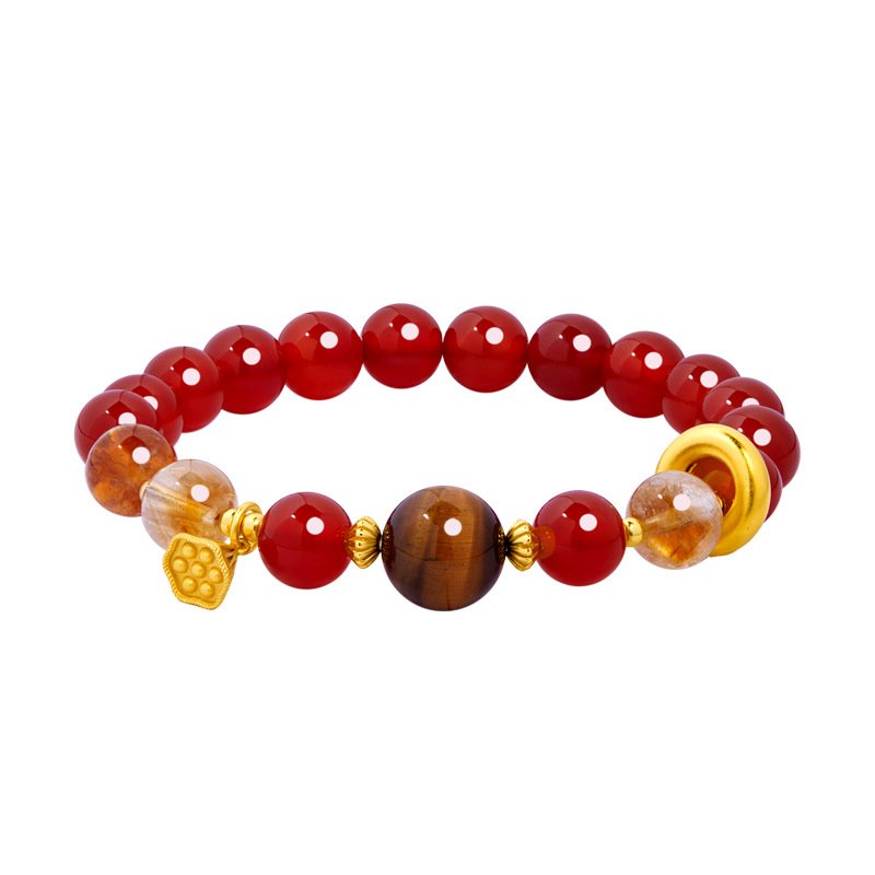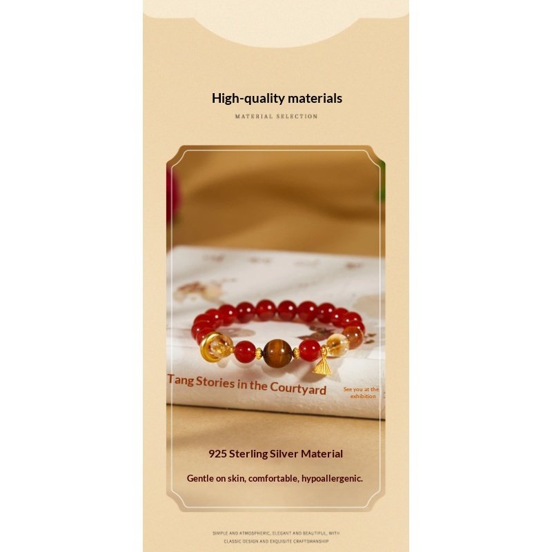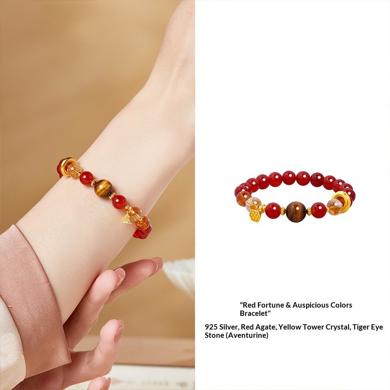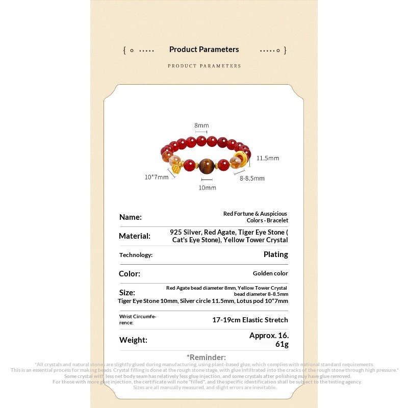 The main material is S925 sterling silver (with 92.5% silver content, featuring good wear resistance and anti-oxidation properties); it is paired with natural red jasper (dark red color, smooth texture, symbolizing auspiciousness), yellow topaz (implying wealth attraction), and tiger’s eye (enhancing aura and promoting fortune transfer). It integrates lotus pod (a classic Chinese element,Implication ‘continuous good things’), and fortune bead (circular bead body, symbolizing ‘good luck coming your way’).