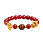 S925 Sterling Silver Red Agate Bracelet with Yellow Pagoda Crystal, Tiger’s Eye, and Lotus Seedpod Lucky Beads